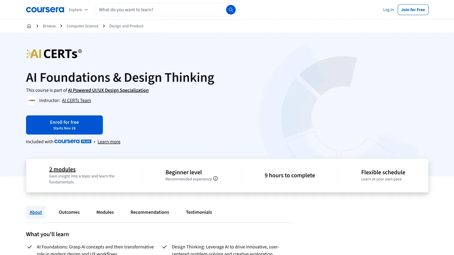 This course from Coursera is designed to help UI/UX and product designers build a strong foundation in AI and learn how to apply design-thinking principles in AI-enhanced workflows.